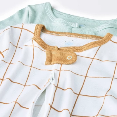 Keep your baby feeling snug and comfy during sleep or nap time in this 2-Pack of Premium Sleep N’ Plays from cloud island™. Made from a soft and stretchy fabric for comfortable wear, these full-sleeve sleep n’ plays feature footed ends for a snug fit. Plus, they’re designed with an inverted zipper on the front to help keep baby cozy during diaper changes. This pack includes two sleep n’ plays — one in a solid mint green hue and the other featuring a grid-like pattern — to add variety to their sleepwear.