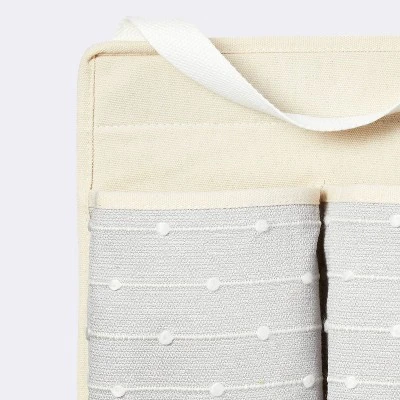 Hold a variety of baby items in this Wall Hanging Storage with Slub Stitching from cloud island™. This wall hanging storage is decorated with white slub stitching on a gray backdrop for sweet and dainty style. This multipurpose fabric storage rack designed with five pocket compartments is great for stowing soft toys, clothing, bath items, and other baby essentials. Plus, it comes with an attached top handle allows for easy hanging.